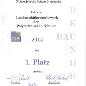 Landesschülerwettbewerb Unser künftiger Lehrling Dominik Hammerl zeigt schon jetzt sein Talent mit einem 1. Platz beim Landesschülerwettbewerb der Polytechnischen Schulen.